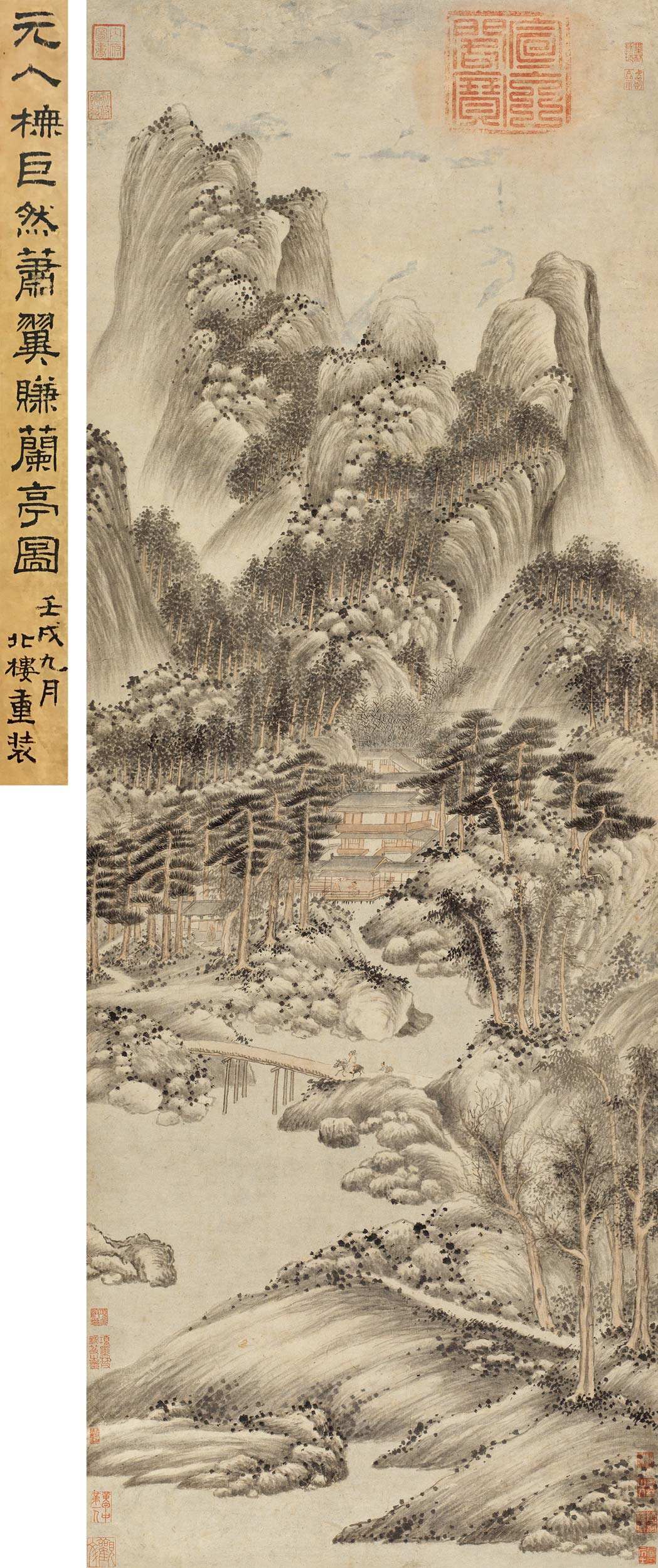 巨然师法董源,又自创新格。他的山水画笔墨秀润,充满田园自然风致。