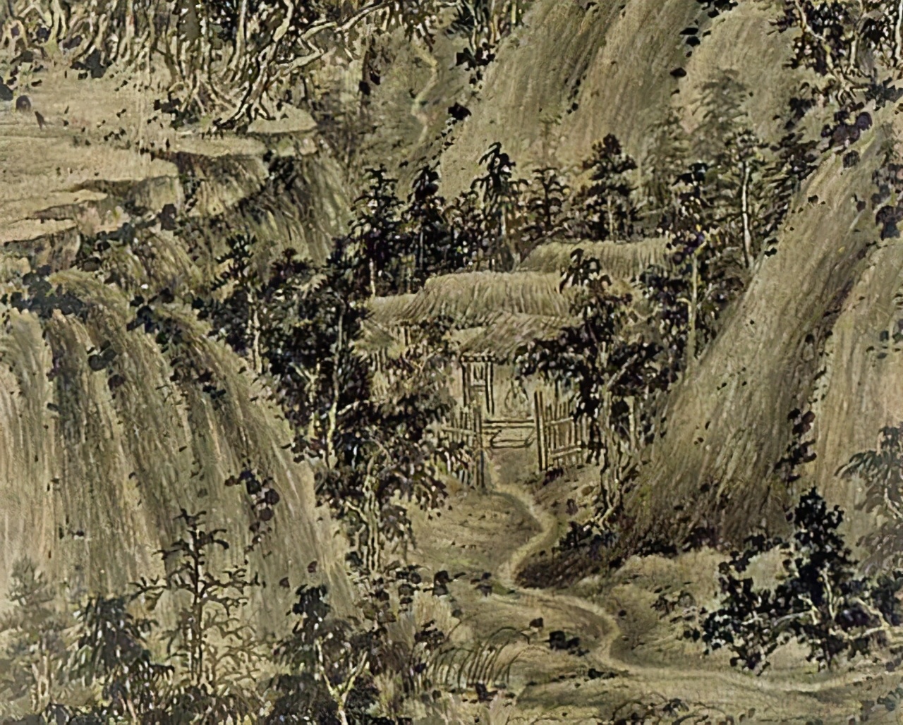 有人评价巨然的画“于峰峦岭窦之外,下至林麓之间,犹作卵石、松柏、疏筠、蔓草之类,相与映发,而幽溪细路,屈曲萦带,竹篱茅舍,断桥危栈,真若山间景趣也”。