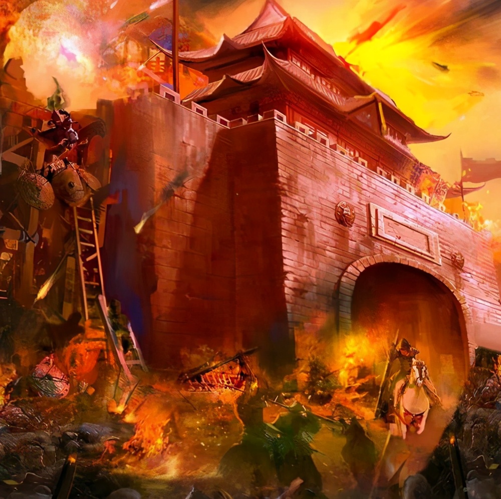 但画家没有忘记人性的表现——孩子抱着母亲大哭,揭示了人在乱世被迫家离子散的悲剧,这段画面成了泄露感情的契机,使得这幅画具有了更加强大的感染力。