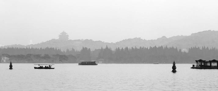画面上部约五分之二都是留白,“之”字形的柳堤风光浓缩在五分之三的篇幅中。而在这五分之三中,又重点突出描绘西湖堤岸的杨柳和水榭画舫,中景点缀乘轿游人,远景则以淡墨加柳树过渡。