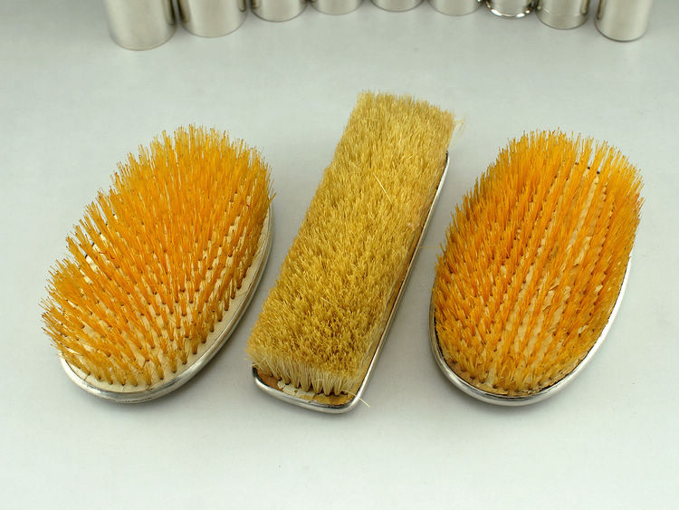 18 、银大衣刷:重量约为:175克 最大直径长度约为:13厘米 宽度约为:8厘米 高度约为:3.5厘米 19 、银扁平刷:重量约为:142克 最大直径长度约为:15厘米 高度约为:3.5厘米