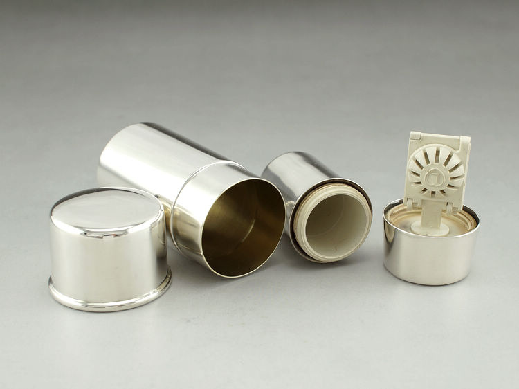 2、沐浴液银瓶Ⅱ 重量约为:73克 最大直径长度约为:8.5厘米 高度约为:3.6厘米