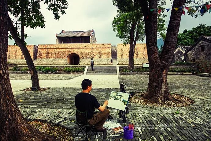 他们用自己的画笔收集古城的每一点风采,再用自己的理解表达出来,这种永恒的记录方式让大鹏所城可以永远的传承下去。看着他们不被任何人打扰的安静作画,时间从身边悄悄溜走了。
