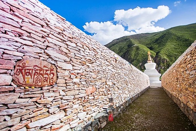 嘉那嘛呢石经城相传由藏传佛教高僧第一世嘉那活佛多德松却帕旺创建,如今已形成一个东西长300米、南北宽80米、高4米、占地面积2.4万平方米的石经城奇观。