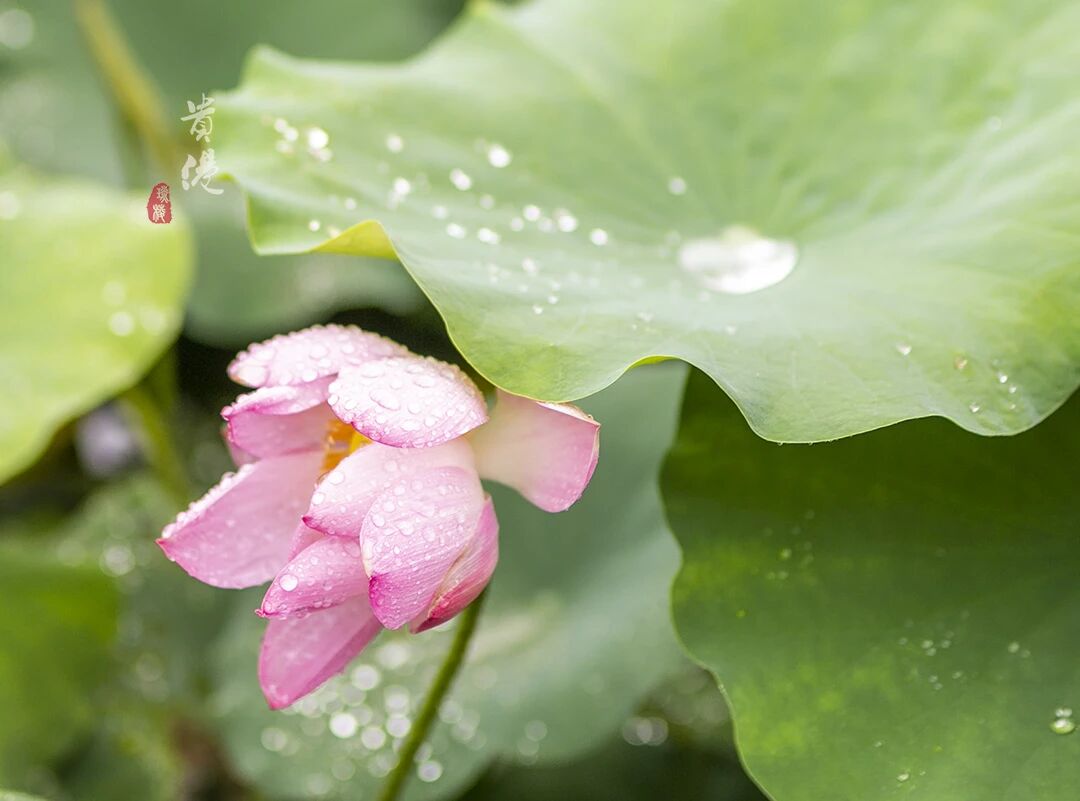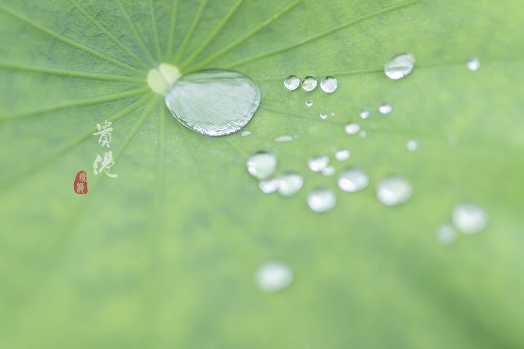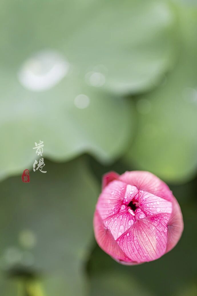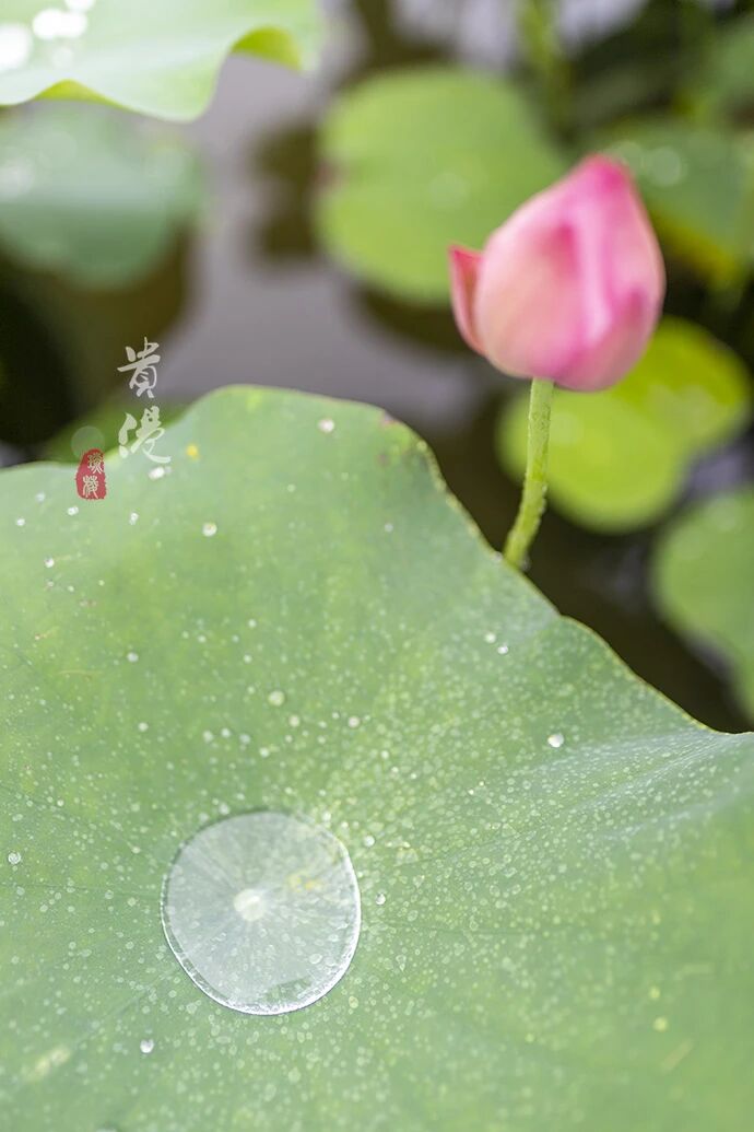 没有了平日的安静,雨中的荷花显得灵动了几分。雨点打在荷叶上,啪啪作响,随后又慢慢滚落到叶子凹下的窝里,远远看上去就如一只翡翠的玉盘里盛着一颗颗透明的珍珠。