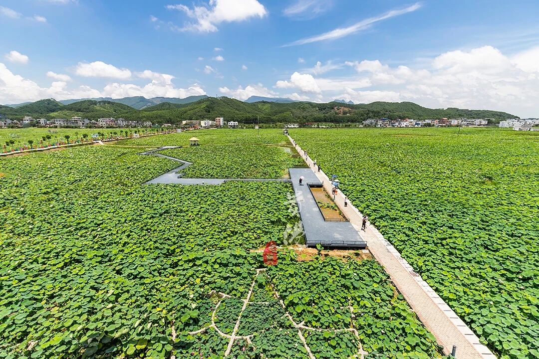 在荷美覃塘景区,大规模连片种植荷花3000多亩。仲夏时节,千亩荷花竞相绽放,一碧千顷的荷塘,被浓淡相宜的荷花层层包围,散发出阵阵的清香。