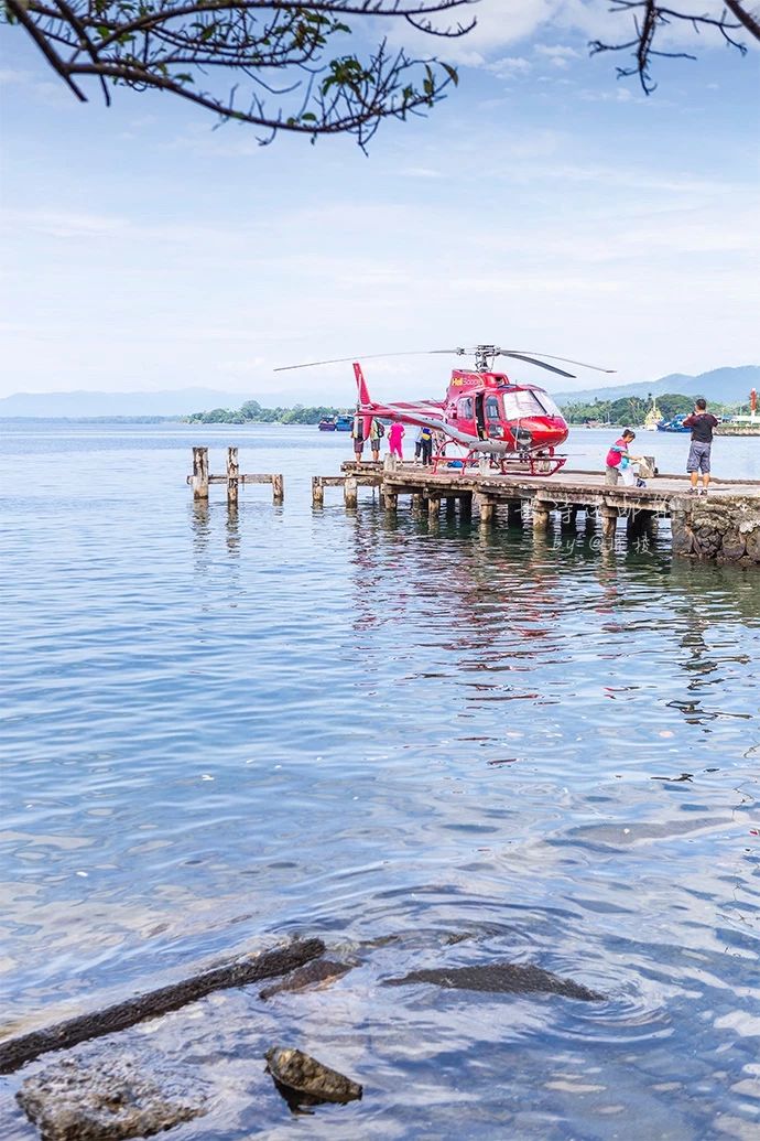 这家店很多元,除了咖啡吧,靠路边是精品店,售卖一些当地的手工艺品。楼上是旅馆,后面还有小码头,码头上停着一架直升机。