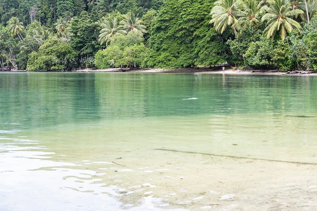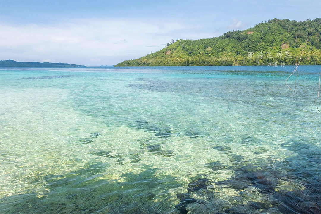我们一路往阿布所说的海岛前进。到达海岛后,浅滩极美,白沙滩上铺满了碎珊瑚和淡色贝壳。但我并没有在岛上游玩,穿戴整齐就下水浮潜了。那样美的水下世界,还好我没有浪费一点时间。