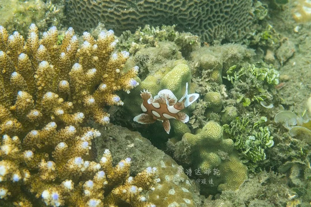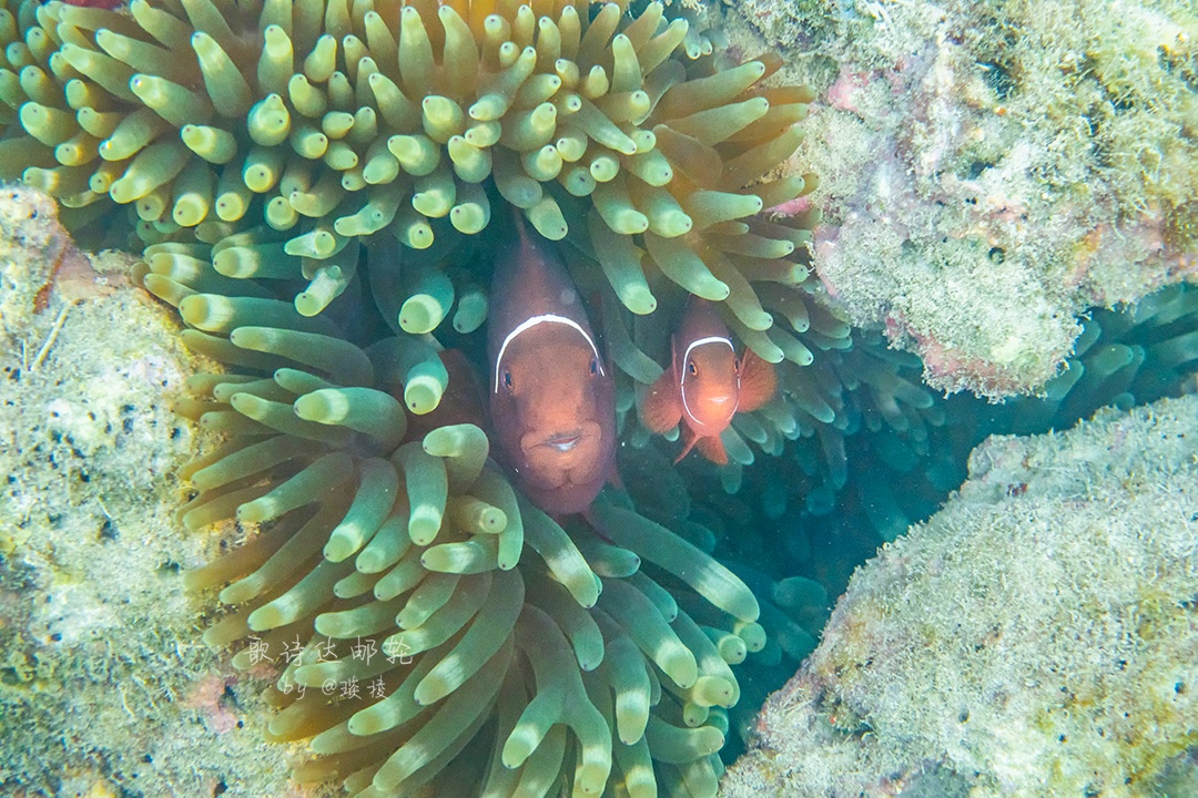 在一丛海葵里发现了两只顽皮的小丑鱼,可能是《海底总动员》里的父子俩也说不一定,一下子勾起了我的玩性。