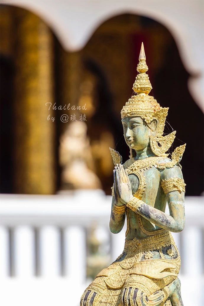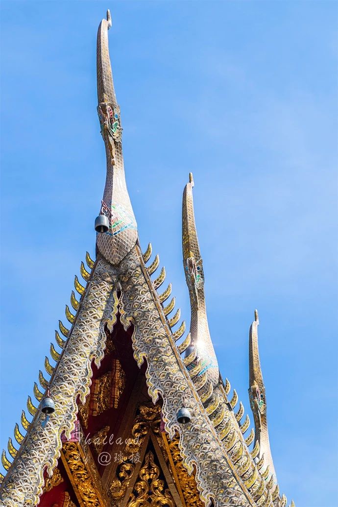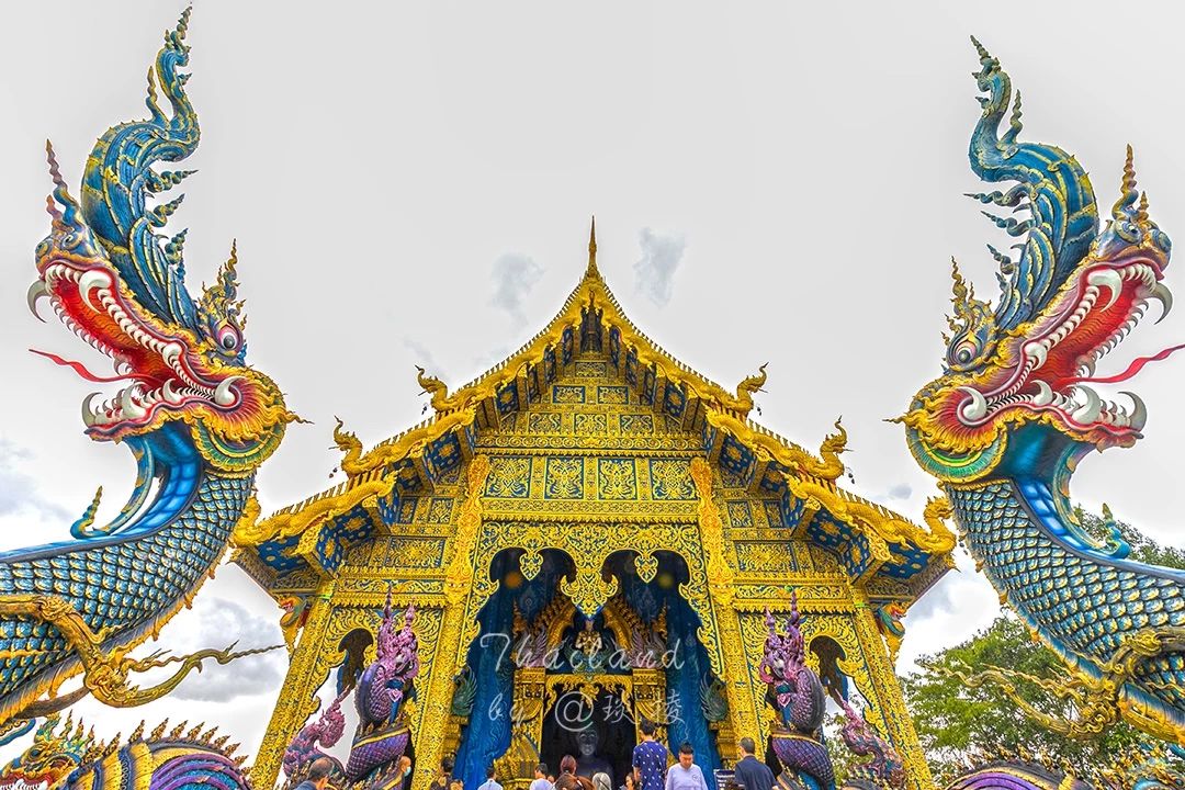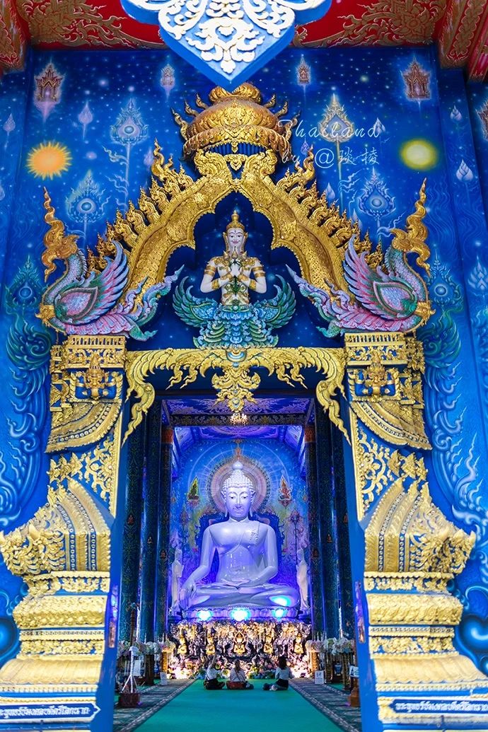 这蓝色饱和度很高,却又不单单只是蓝,还有紫色、红色的点缀与映衬,有着和清迈蓝庙一样的闪闪发光的金箔装饰。显得层次更多更丰富。
