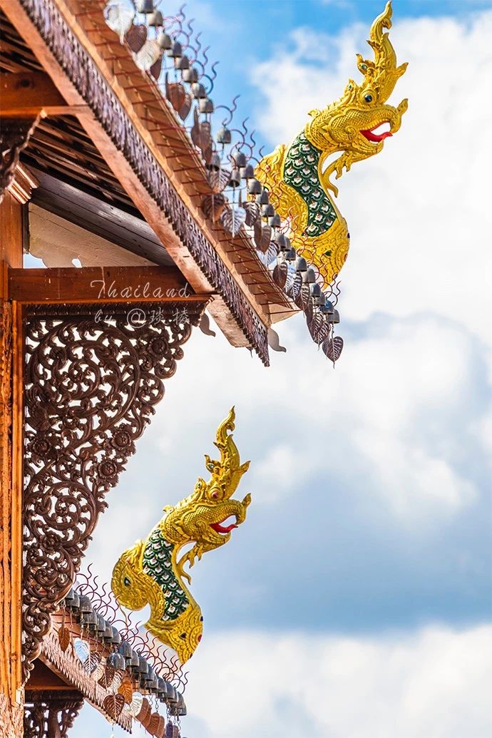 细看那些建筑上的木质雕刻,繁复而精美,点缀以闪闪发光的金箔装饰,你不得不深深叹服于匠人们精细的手艺能造出这样巧夺天工的艺术品。