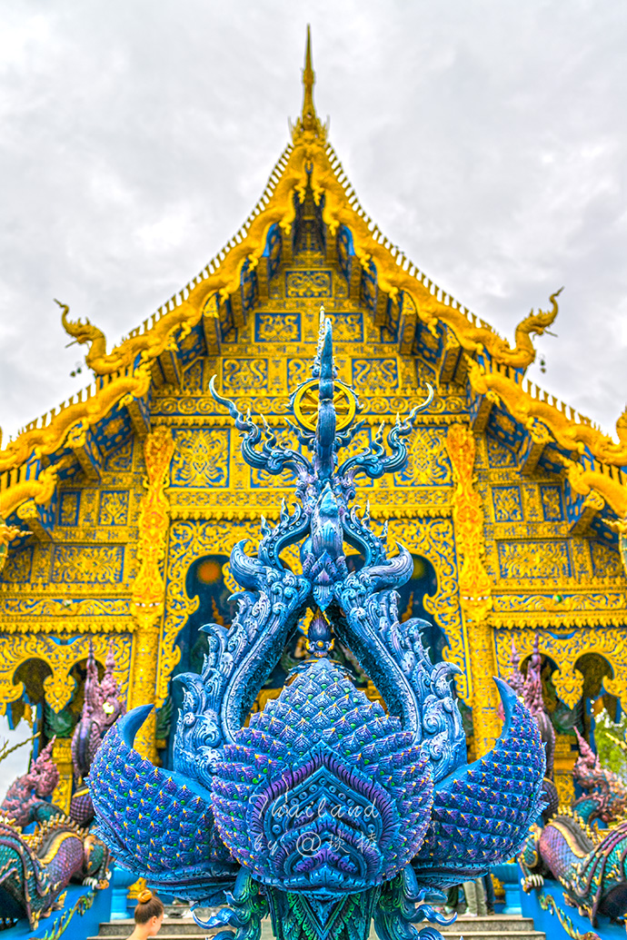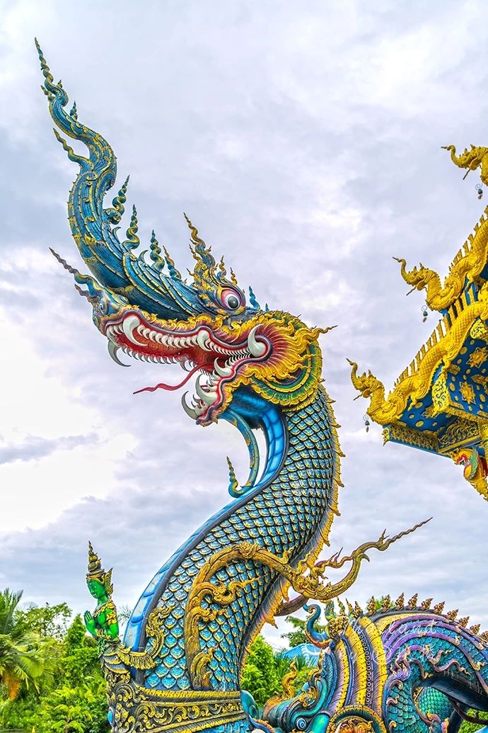 清莱蓝庙是由白庙主人许龙才先生的徒弟 Phuttha Karbkaew 设计并主持修建,清莱蓝庙给人的感觉是另外两个字“妖娆”。
