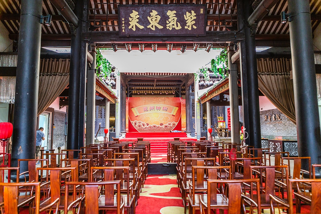 如今,经过两次修缮的新会书院已成为邕剧的文化展示点,是戏剧爱好者的天堂,每逢周末都会有好戏上演。在紫气东来的牌匾之下,一排排座椅工工整整的摆放,等待着慕名而来的客人。