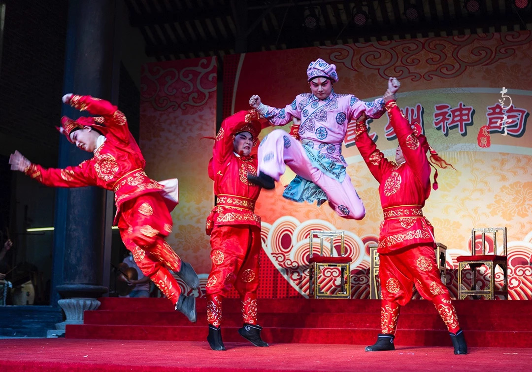 整场表演中,我和大多数观众最期待的要数邕剧的传统武功特技了,因为这些武功特技都是演员们日复一日、年复一年慢慢磨练出来的。