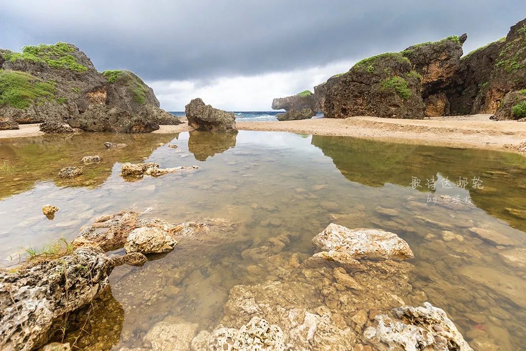 它的沙滩并不是由我们常见的白色细腻的沙子组成的,反而非常粗砺。如果光脚踩在上面,应该会觉得硌得疼吧。周围的礁石山脉十分奇怪。
