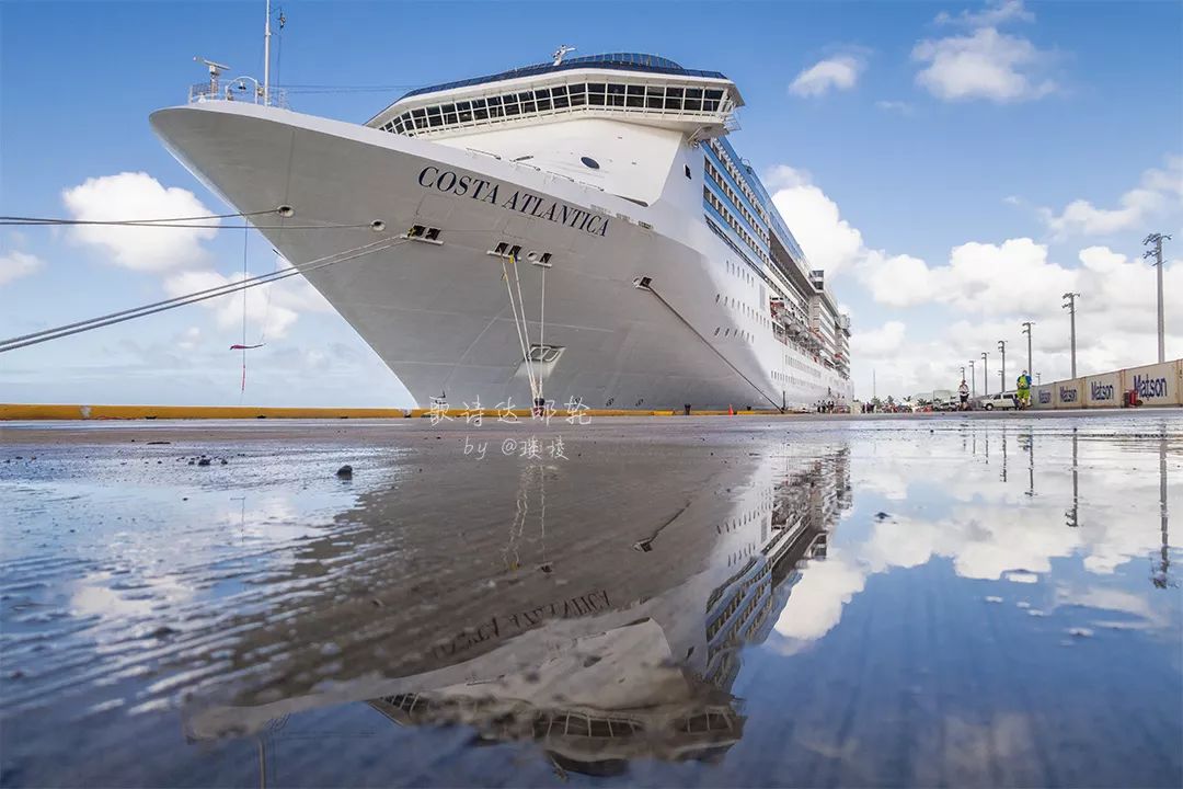 下了船,天气热得人有点晕晕乎乎。刚刚下过雨的海岛一片清新,回看我们的歌诗达邮轮,庞大的白色身躯在湛蓝的天空下舒展。