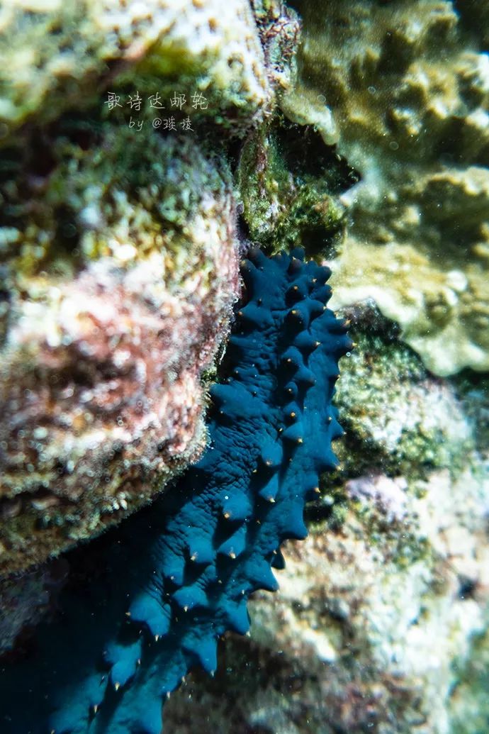 发现了一只海参,蓝色的身体在透亮的海水里异常夺目。我只是拍了照就离开了,怕打扰了它。
