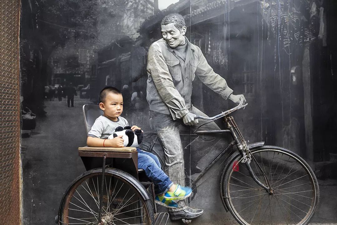 每条街道上还有与游客互动的元素,别光看,也得参与一下。你会感觉自己参演了一场老电影,色调明亮,建筑斑驳。这场电影讲的是关于老成都的故事。