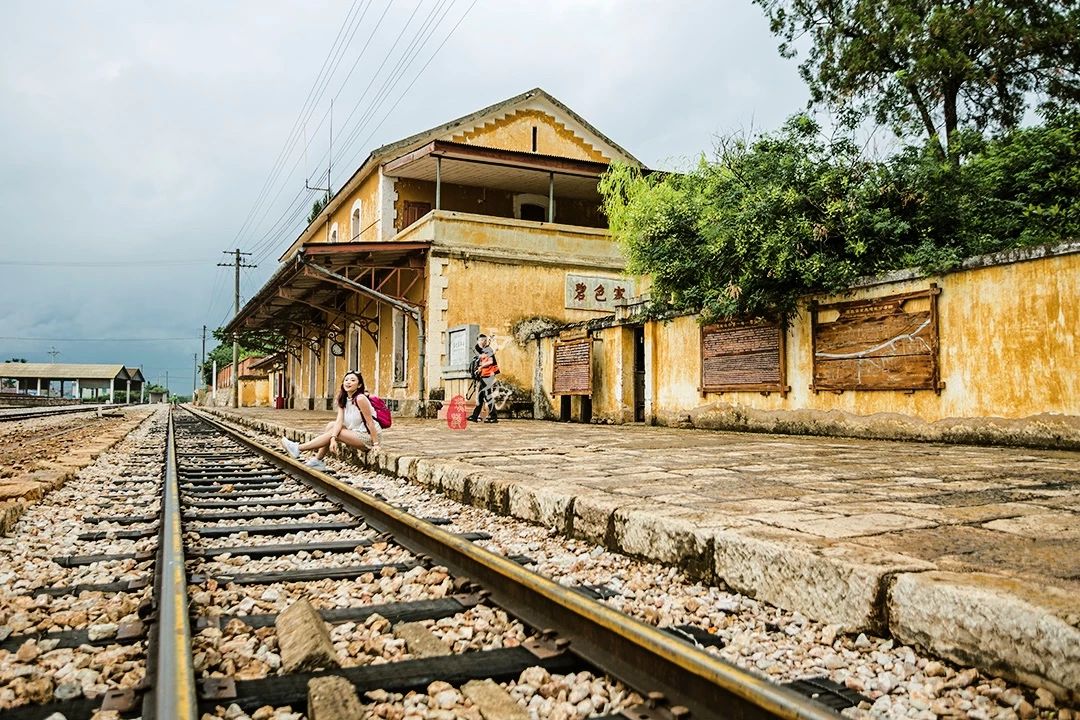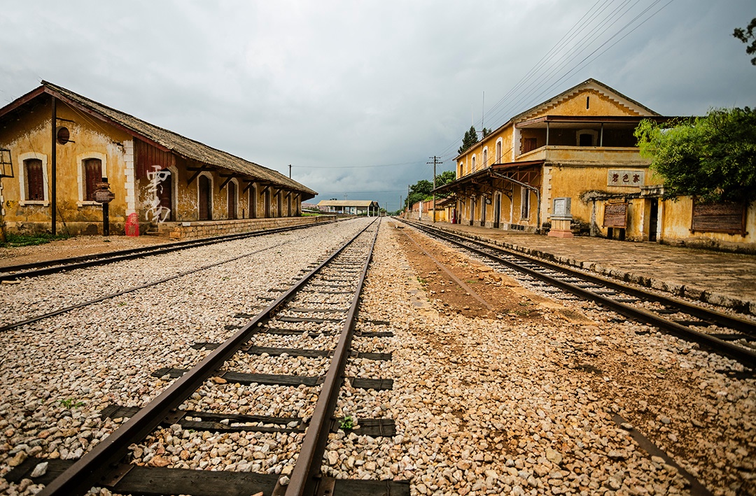 一到碧色寨,首先跃入眼帘的就是几条交错的铁轨,铺设在石子路上,一直延伸到视线看不到的远方。黄色的站房安静的矗立两边,充满与云南格格不入的异域风情。
