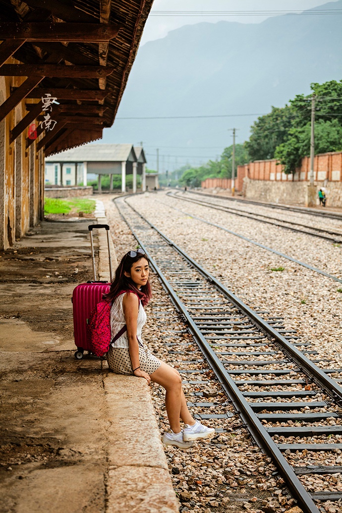 不想那些沉重的历史,碧色寨车站还是很好看的。这种感觉就像是美国西部大片,尘土飞扬,站台上呼啦呼啦驶过一辆又一辆乌黑发亮的列车,浓浓的蒸汽盘旋着上升。我给同行的小伙伴拍了好多照片,每一张都很有感觉。