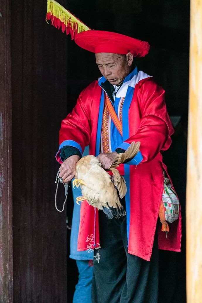 从寨门出发,一路上到瑶寨的最高处。他们会先在南岗庙,也就是盘王古庙点土炮、杀鸡、点爆竹、过九州。