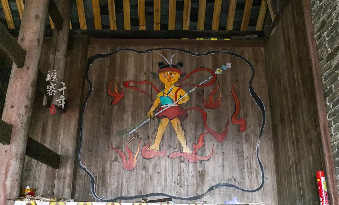 奇怪的是,古庙的右边居然是一幅哪吒画像,当地人还拜哪吒?