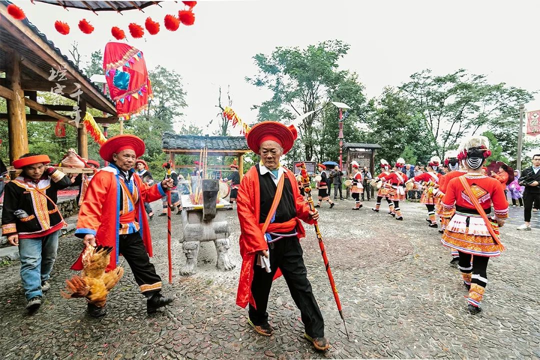 祭祀或者祈福活动里点炮、杀鸡很常见,唯独过九州是瑶族特有的一种仪式,非常隆重。他们以此来怀念祖先迁徙到瑶山漂洋过海的艰苦历程。
