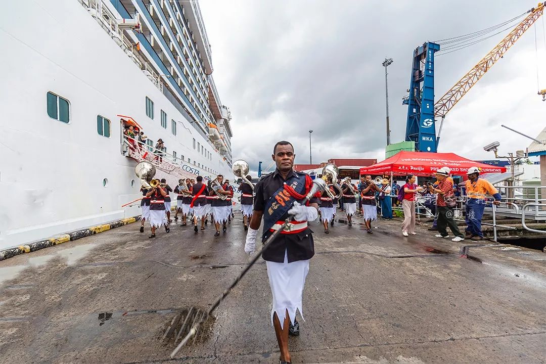 从歌诗达邮轮下来,当地人用盛大的仪仗队欢迎了我们。他们身着本土的服饰,演奏着特色的乐器,一下子就把浓浓的热情传递给了我们。