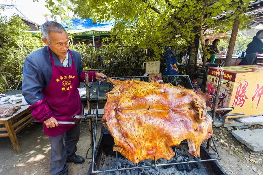 玩累了,循着香味,你能找到村子里的特色美食。一整只小乳猪被烤的金黄冒油、外皮酥脆。付了钱,老师傅手法利落的就能给你来上一份热腾的烤乳猪,这是最正宗的云南滋味。