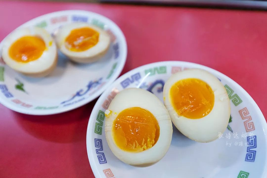不过,我最爱的还是配面的溏心鸡蛋。这个鸡蛋,从里到外,从蛋白到蛋黄,火候都非常均匀,是刚刚熟的状态。整个蛋黄都是溏心,蛋白也比一般的煮鸡蛋更软滑。味道有点像卤蛋,又带点甜。我忍不住又加了一份。。。