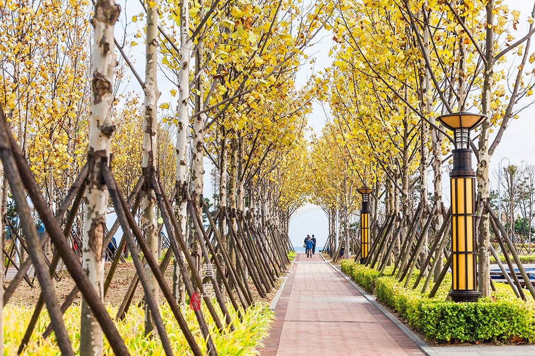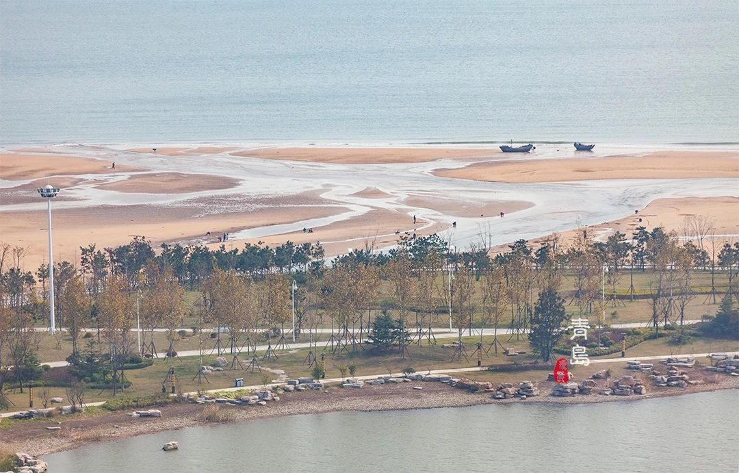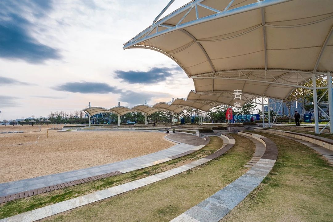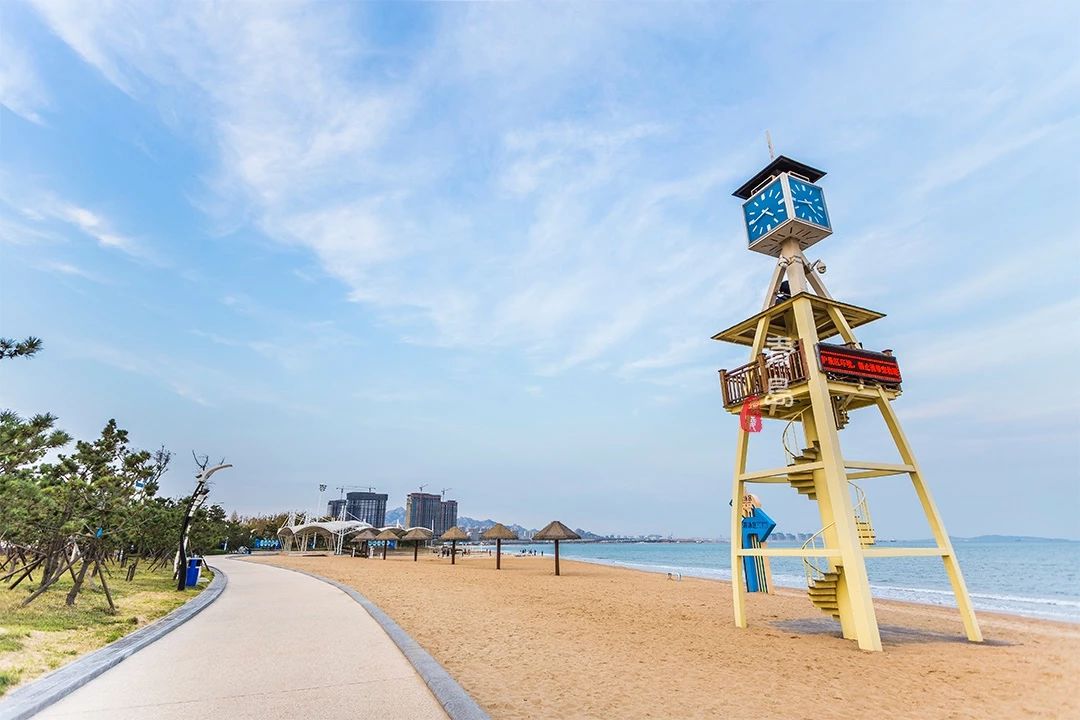 这片长长的沙滩叫做“灵山湾城市阳台”,位于灵山湾旅游度假区核心区,是青岛西海岸最大的社会公益性项目,也是青岛市第一个大型免费公益性城市休闲公园。