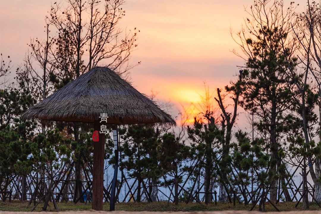 等到天再晚一些,最美的部分来了。落日挥洒着淡淡的金色和橙色,而海变成了一种更深的蓝。配上周围的树和凉亭,这感觉就像是某个时间过得很慢很慢的度假村。
