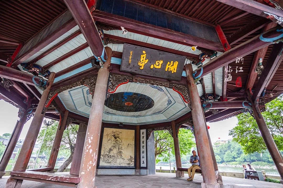 当你走进这个湖心亭,吹拂过湖面的微风为你带来远方的草木香气。抬头,顶上是精巧的木质结构,远方是看不尽的水面。你不会感觉自己身处都市之中。