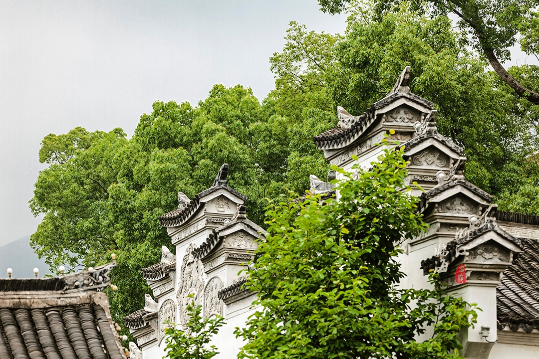 随处可见的黑白灰三色为主的粉墙黛瓦充满了江南的韵味。在绿树掩映下,这景色就像是一幅经典的水墨画。我记得道家在色彩的观念上认为“色者,白立而五色成矣”,喜欢黑白这些平淡素净的色彩。大概这就是江南多这样建筑的原因吧。