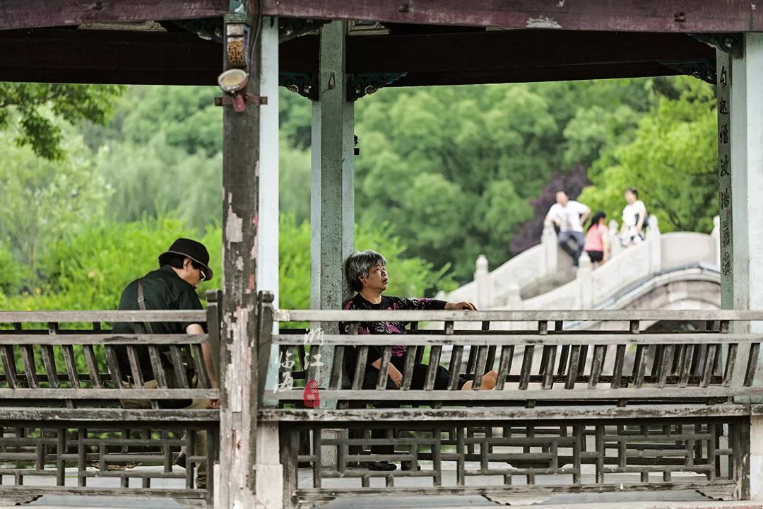 走到寂寂无人的地方,一座曲廊如一道飞虹横跨水面。遇到风雨天气,身处曲廊之中,看着雨点打破水面,听着滴答的雨声,这该是怎样的一种享受啊。