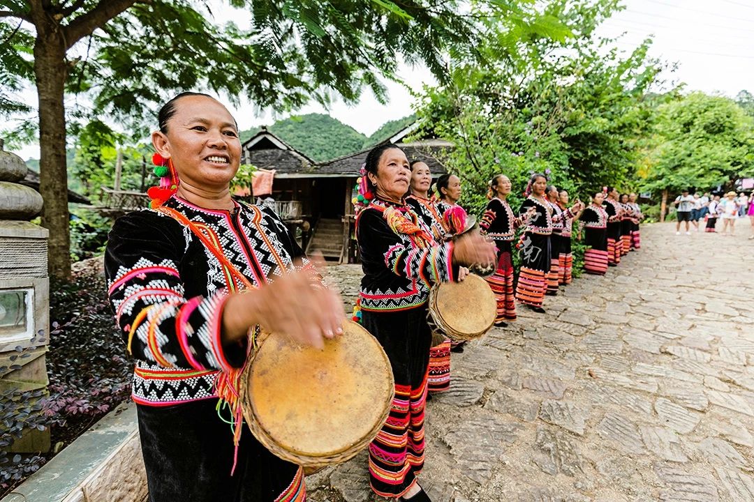 仔细听,哪边传来高亢的歌声,那就是老达保。伴着鼓声,一个个快乐的音符像是引路的精灵,钻进人们的耳朵,把人们邀请进村。
