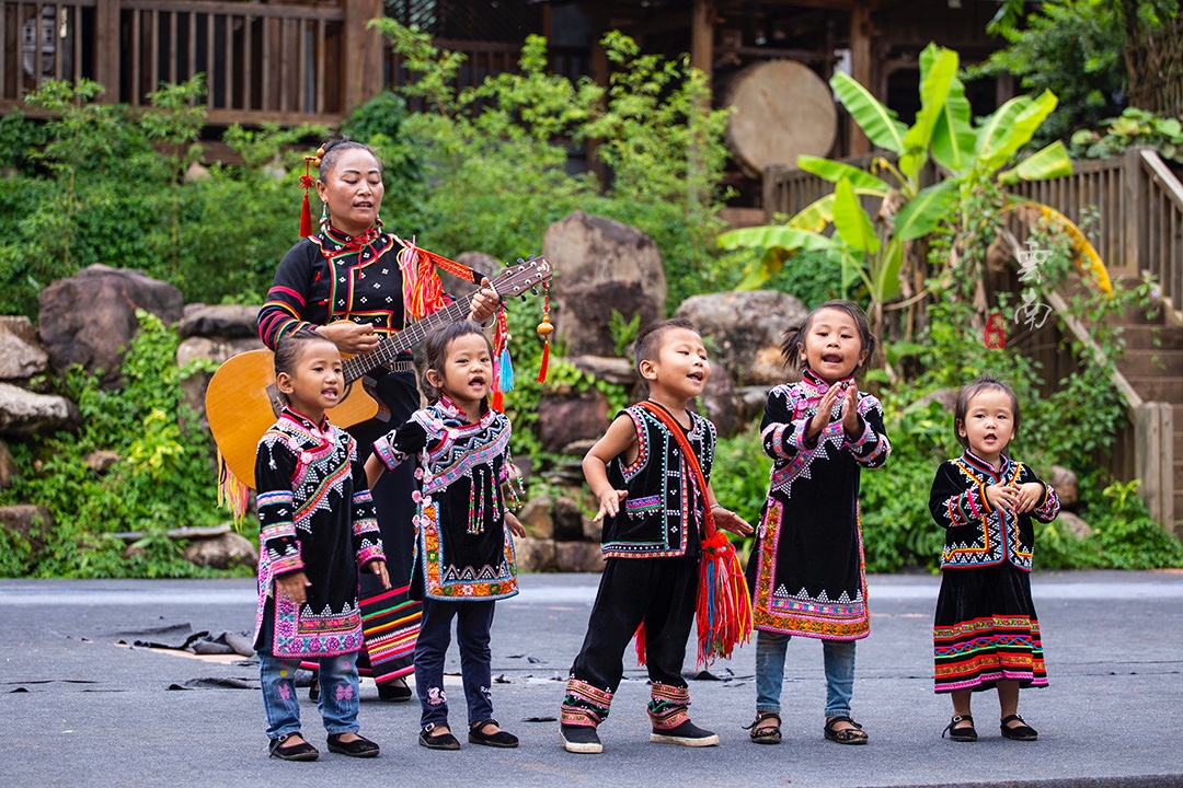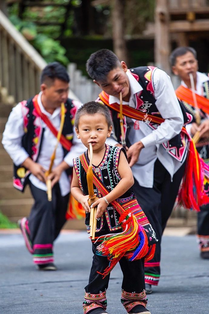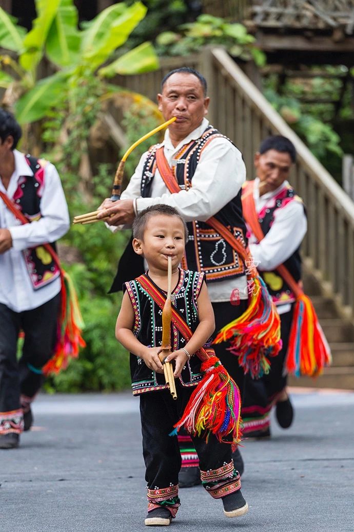 继续往村子中走,一块平坦的广场上,穿着拉祜族服饰的村民们在表演。这是芦笙舞,拉祜族最擅长的舞蹈之一。他们中有年轻人,也有老人,最前面还有一个可爱的孩子,吹奏着特色的器乐。到了合唱的时候,各种声音混合在一起,你几乎分辨不出那些或深厚或稚嫩的声音,你只会觉得它们的组合美妙至极。