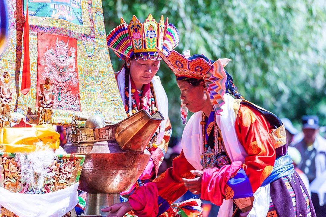 所到之处,人们为姑娘们俊俏的容貌、婀娜的舞姿、优美清新的唱腔赞叹不已,观众们惊叹道:莫不是阿吉拉姆下凡跳舞了吧!以后人们就将藏戏演出称为“阿吉拉姆”。
