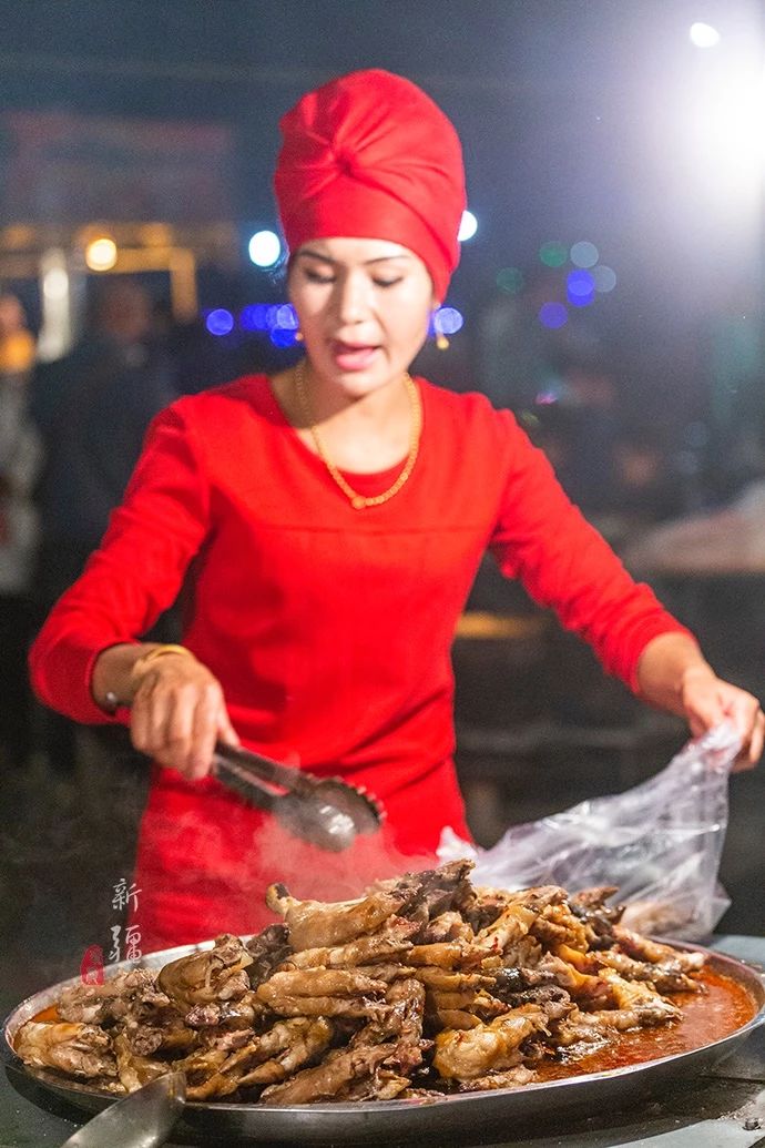 品尝新疆美食最地道的方式,自然不是去什么颇有名气的店里点一顿大餐,而是——夜市。幕天席地,通畅透气,这里才有真正好味道的食物。