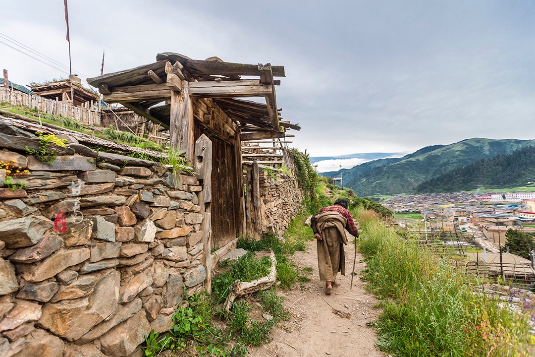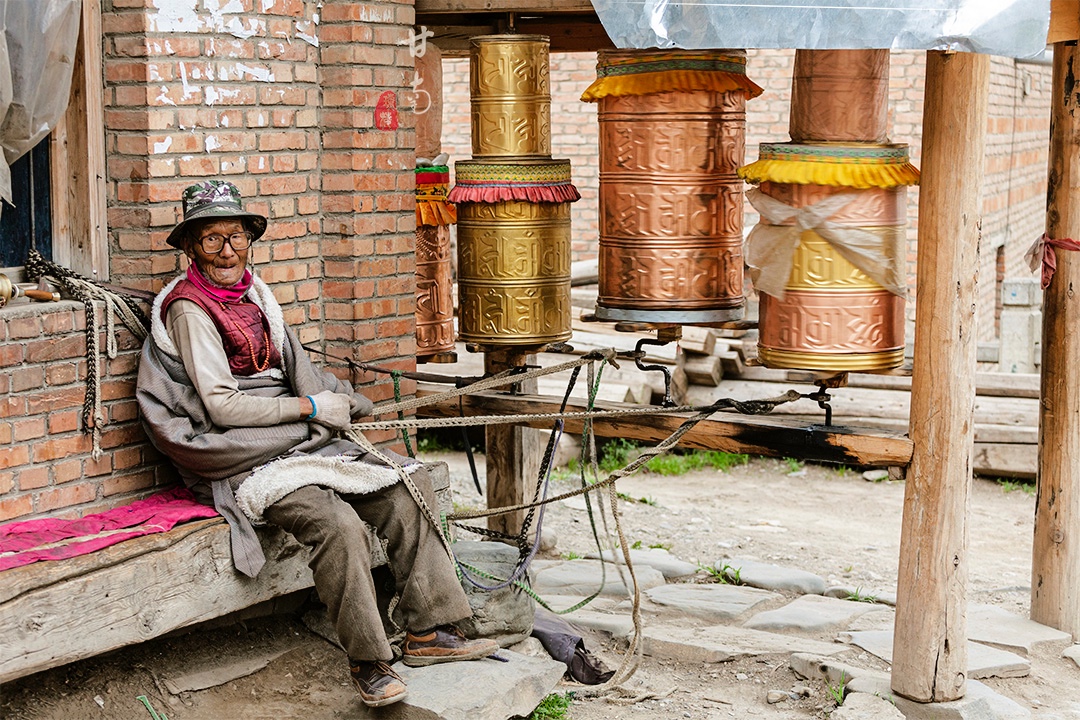 虽然这里的建筑别具一格,但吸引我的并不是老房子,而是那些虔诚转经的人们。村子里耄耋老人随处可见,他们并不会汉语,转经祈福是他们生活中非常重要的一部分。