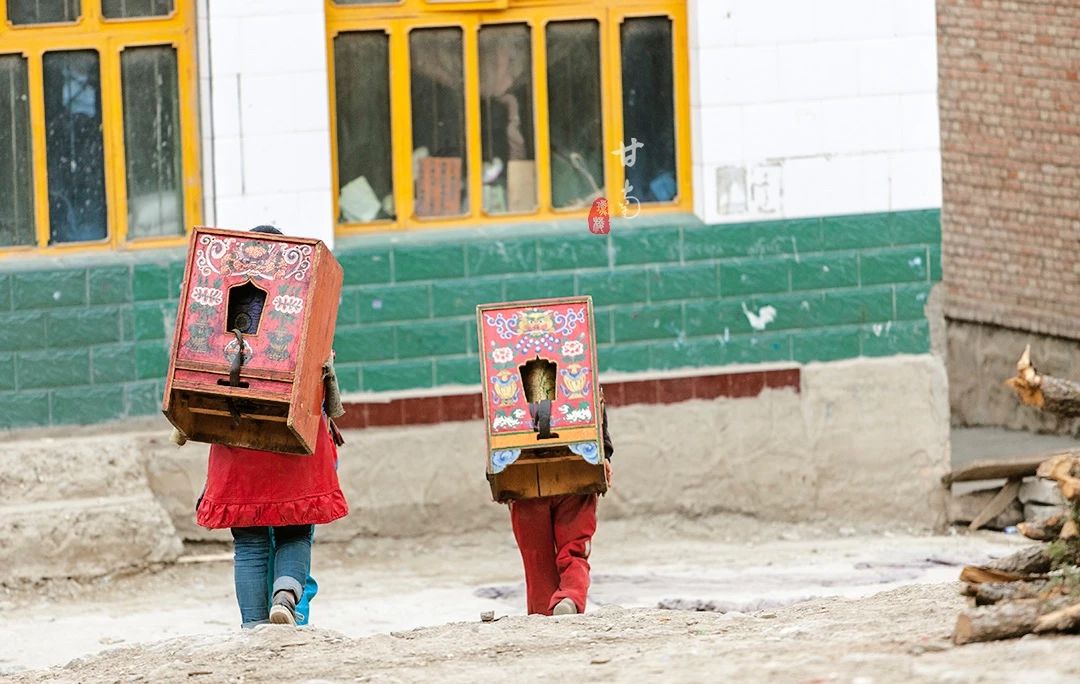 村子里的房屋看着呈土黄色,是因为外墙均由厚厚的泥土打成,只在中间有几眼天窗。不过外墙只是起保温和牢固的作用,房屋内部的装饰则充满了藏区风格。这种外不见木、内不见土的房屋既保暖又透气,在其他藏区也并不多见。