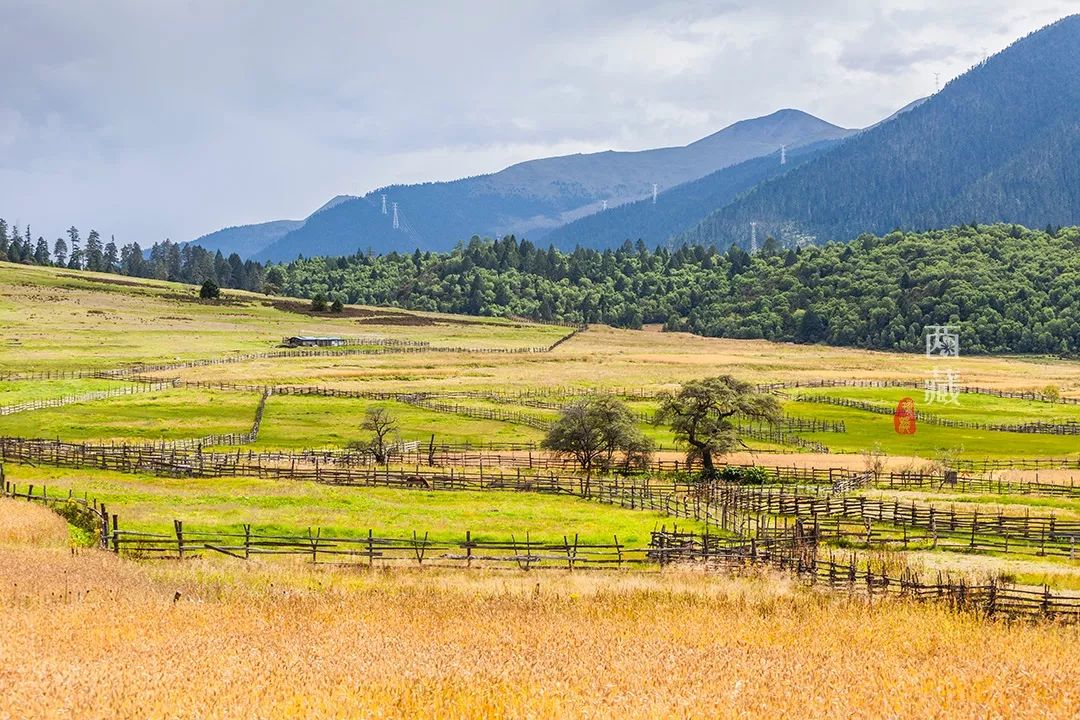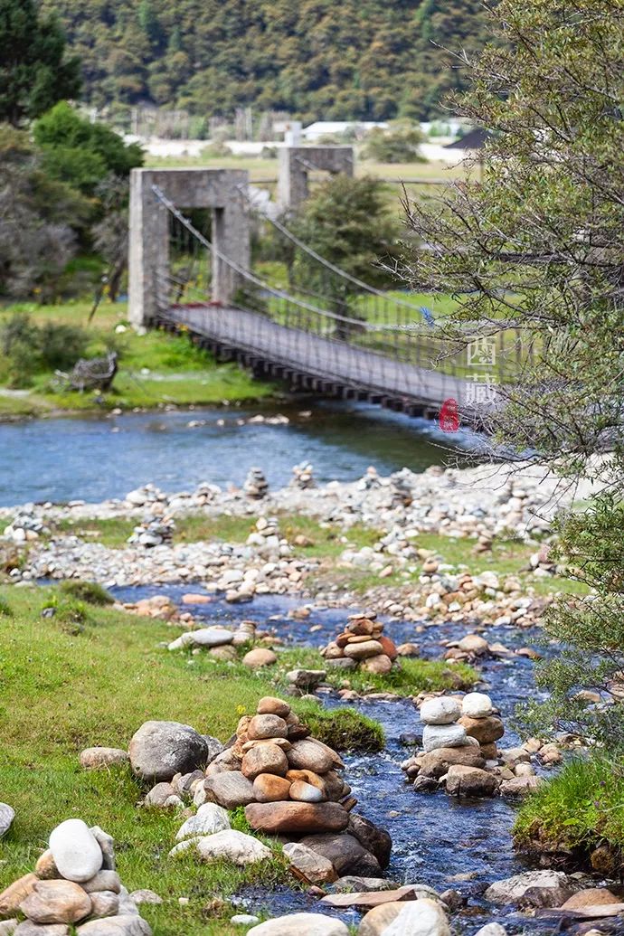 远处,原始工布风情的藏式村落星罗棋布,颇具林区特色的木篱笆、木板屋还有木头桥错落有序,勾画了一幅恬静、优美的“山居图”。