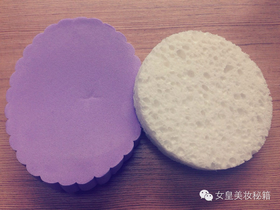 (左边紫色的是海绵扑,右边的白色是最近新欢,木浆棉洗脸扑)