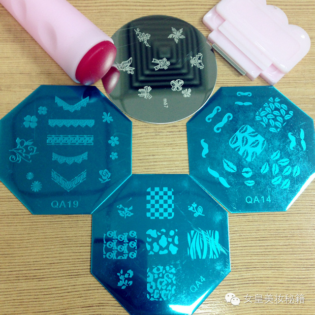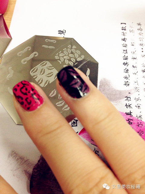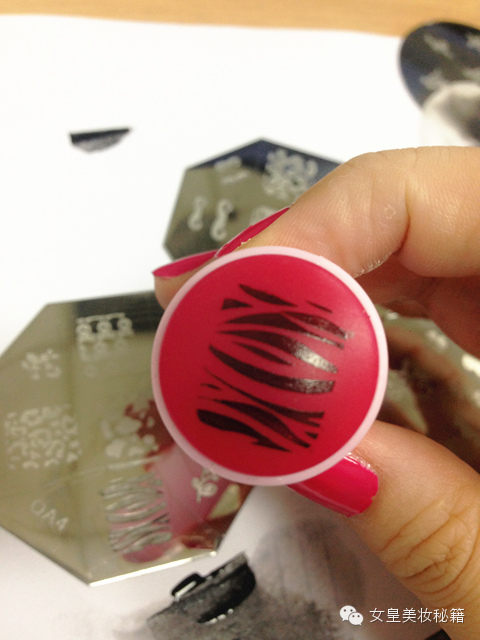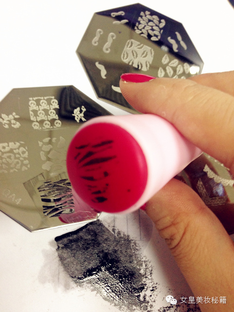 用法简单来说,就是涂好甲油做底色后,用印章将图案里的甲油转印成花纹再印到指甲上。拍了几张步骤,供大家理解: