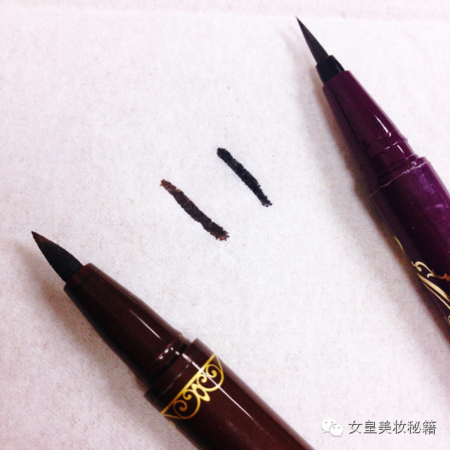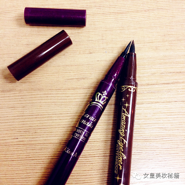 红色管子是kiss me的黑色,笔头极细且软,超级防水,但新手不太好掌握,手抖就很容易画的歪歪扭扭。