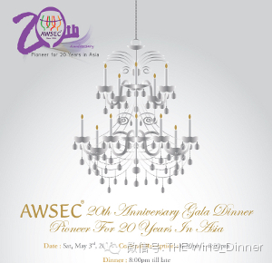 五月三日星期六前來參加我們的慶祝晚宴,與我們舉杯齊慶AWSEC成立20周年,享受一個充滿歡樂的葡萄酒晚宴.門票有限,欲購從速!