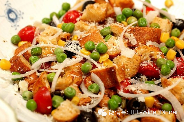 加入烤過麵包丁的沙拉與輕微過桶的葡萄酒都能搭配得宜。