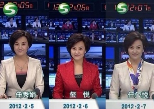 2月8日人民网 近期微博网友“破船烂舟”在微博上曝光了一张图片,图中今年的2月5-7日三天期间,甘肃台的同一位女主播先后更换了任秀娟、玺悦、任玺悦三个名字。这位女主播一天一换、三天连换三个名字的频率,估计也是电视圈内少见的创举。这张图片的截屏,不仅笑翻了网友,还在微博上迅速引发热议。