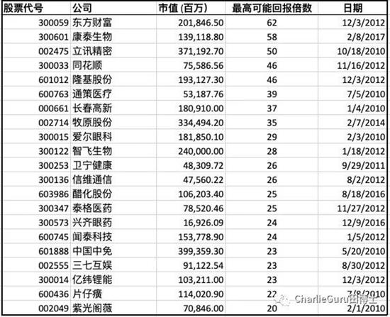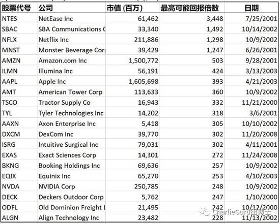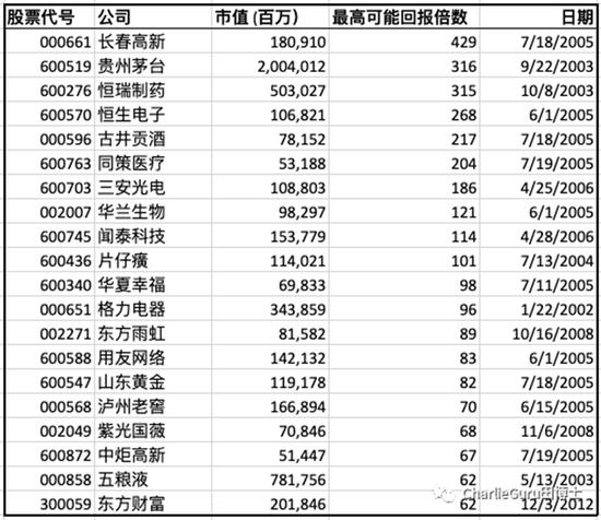 美股20年最牛股涨3448倍,中国20年最牛股长春高新涨429倍,茅台排第二316倍!