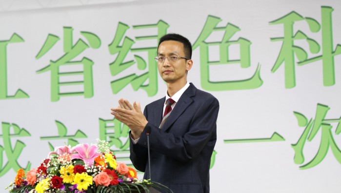 阮俊华作为浙江省绿色科技文化促进会筹备组组长介绍了整个协会的十三年坚持梦想的故事和筹备历程。